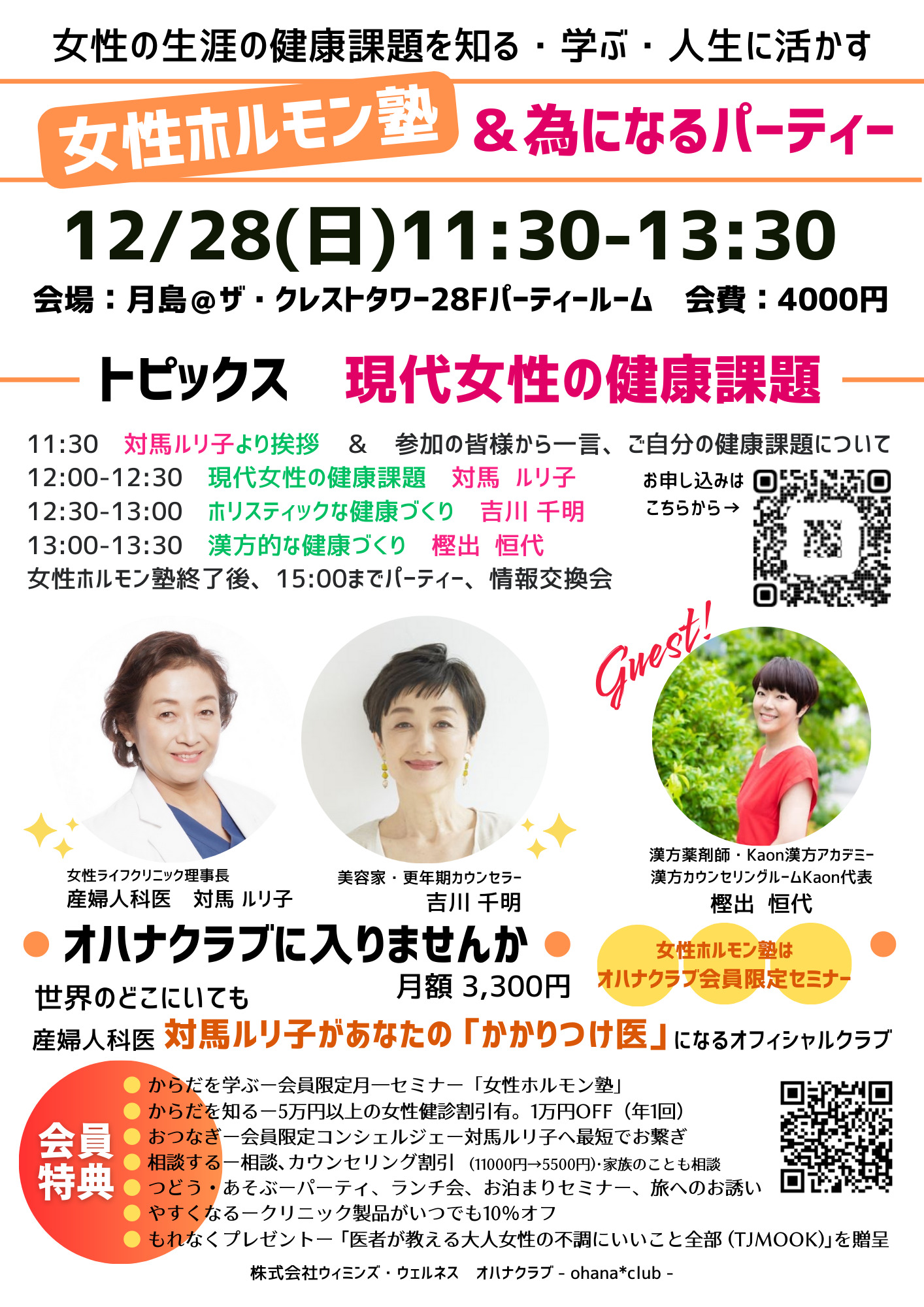 対馬ルリ子12月の女性ホルモン塾®のご案内