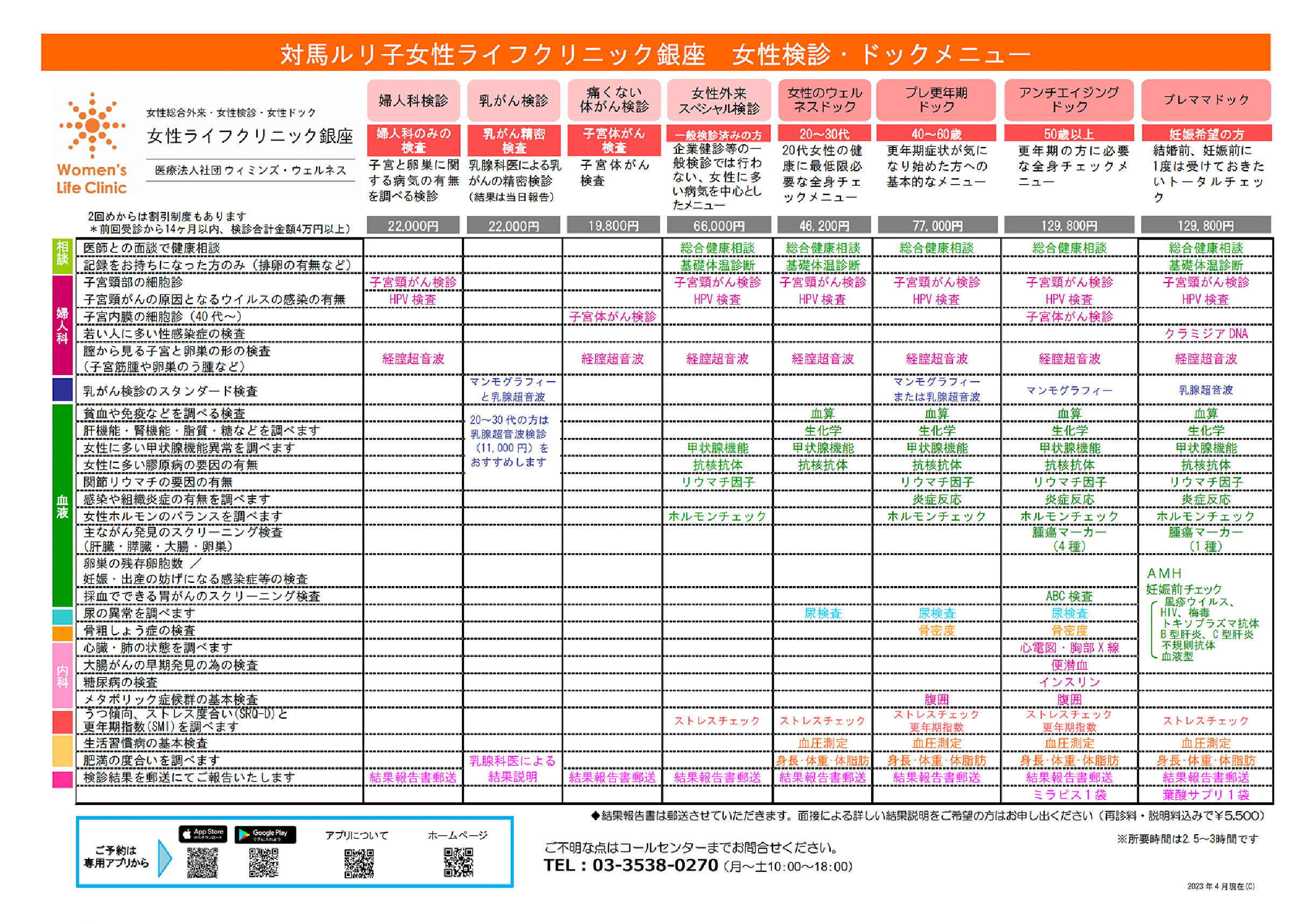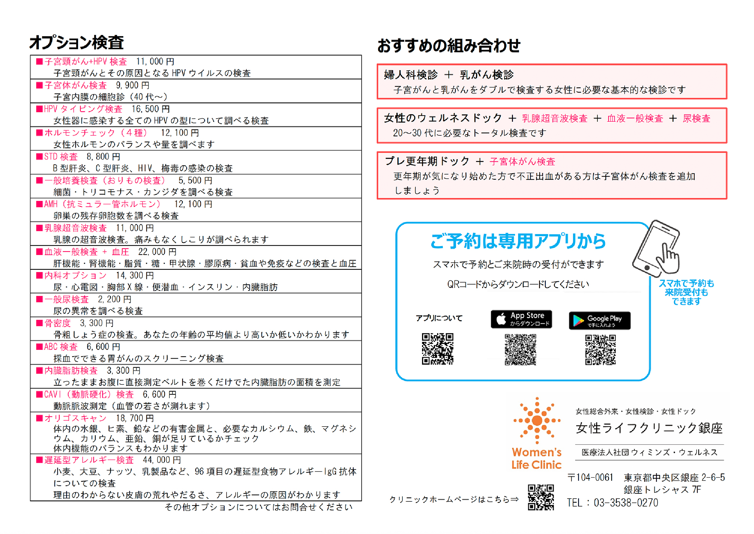 - 婦人科専門医、内科専門医による女性総合健康アドバイス