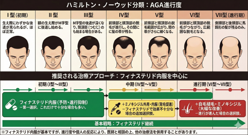 - 4型以降: フィナステリドに加え、攻めの薬である「ミノキシジル」の併用が推奨されます。