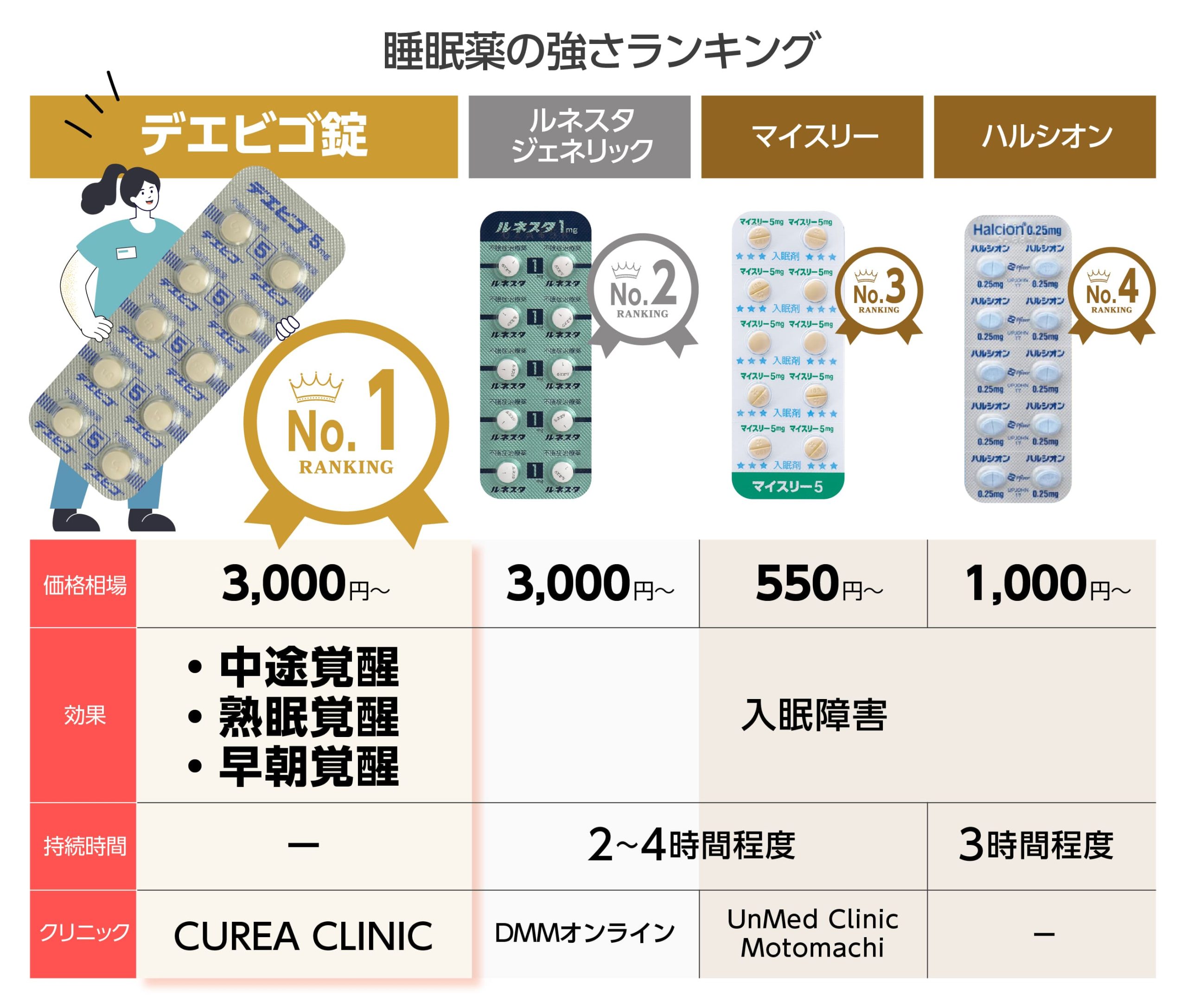 デエビゴ錠の強さランキングは?ほかの睡眠薬と比較