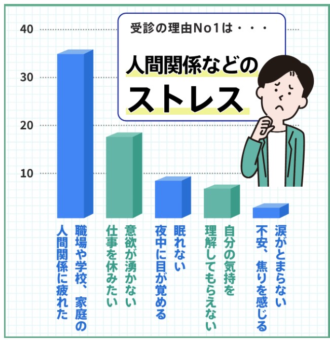 多くの方が、不安や悩みを解消したいという理由で受診しています。画像引用:あしたのクリニック